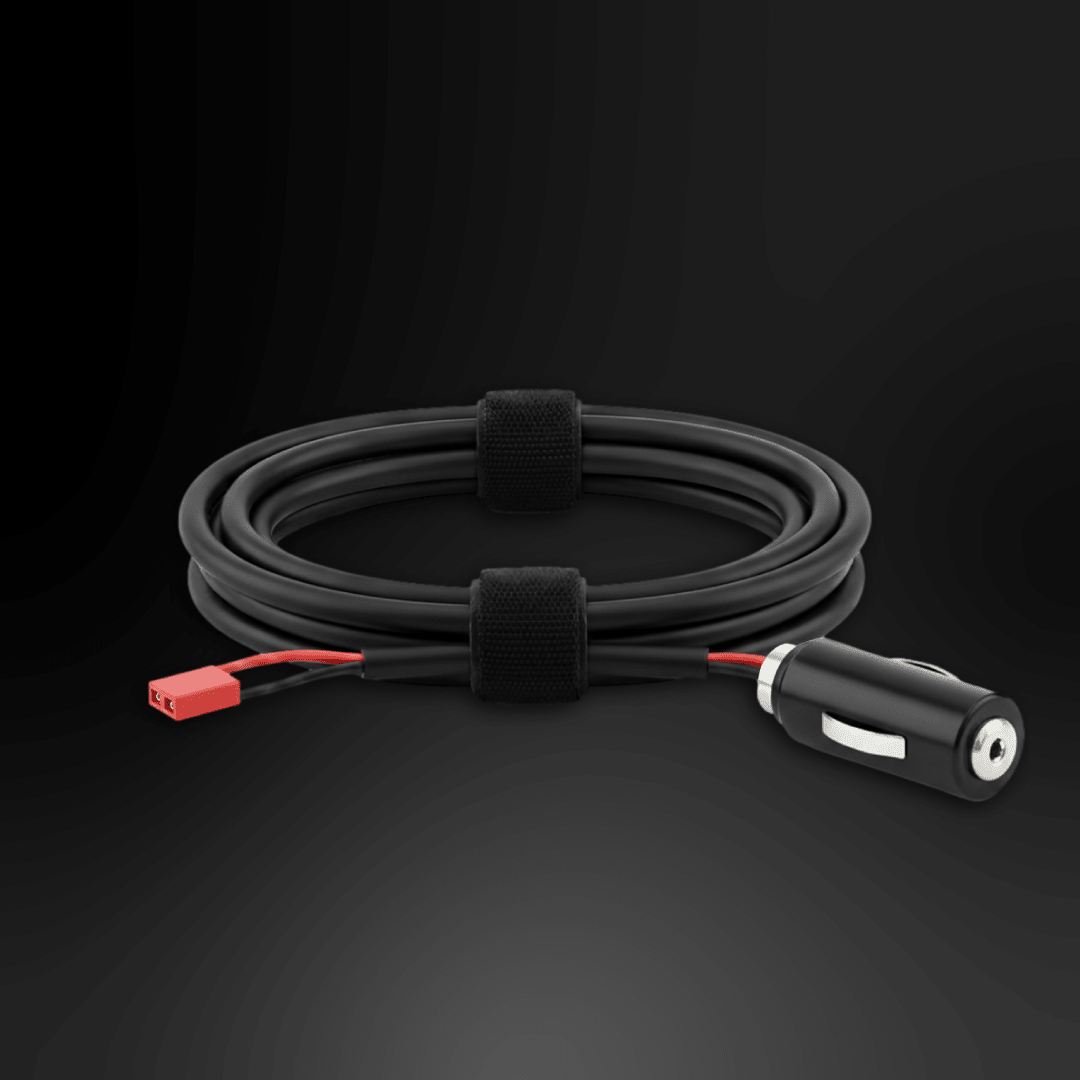Yes, it includes a positive and negative cable that connects to your vehicle’s battery and optional cigarette port.